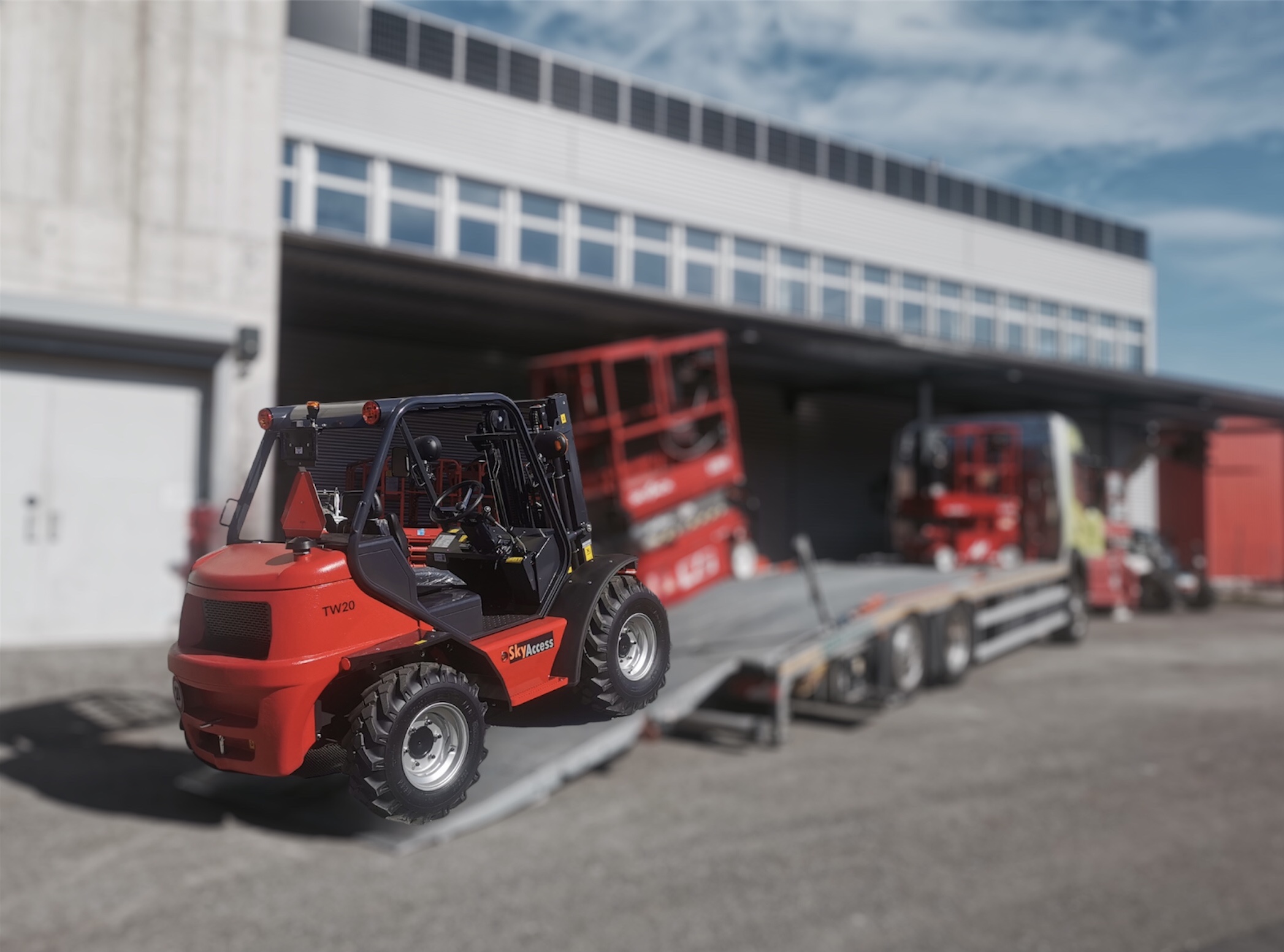 Robust und emissionsarm, das sind die Geländestapler von Agrimac Seit Mitte 2023 bietet die SkyGruppe Geländestapler vom Hersteller Agrimac zur Miete oder zum Kauf an. Der spanische Hersteller bietet in seiner Produktpalette von 1,6 bis 4 Tonnen Hublast Stapler. Die Stapler sind sehr robust und können dank des 4×4-Antriebs und der grossen Räder perfekt auf unwegsamem Gelände eingesetzt werden. Durch die neue Radnabentechnologie und die 18,4 kW Dieselmotoren stossen sie weniger Emissionen aus als gewöhnliche Stapler. Sie sind für das Schweizer Strassengesetz zugelassen und eignen sich für Bau-, Landwirtschafts-, Zeltbau- und Gartenbauunternehmen sowie Betriebe in Bergregionen.