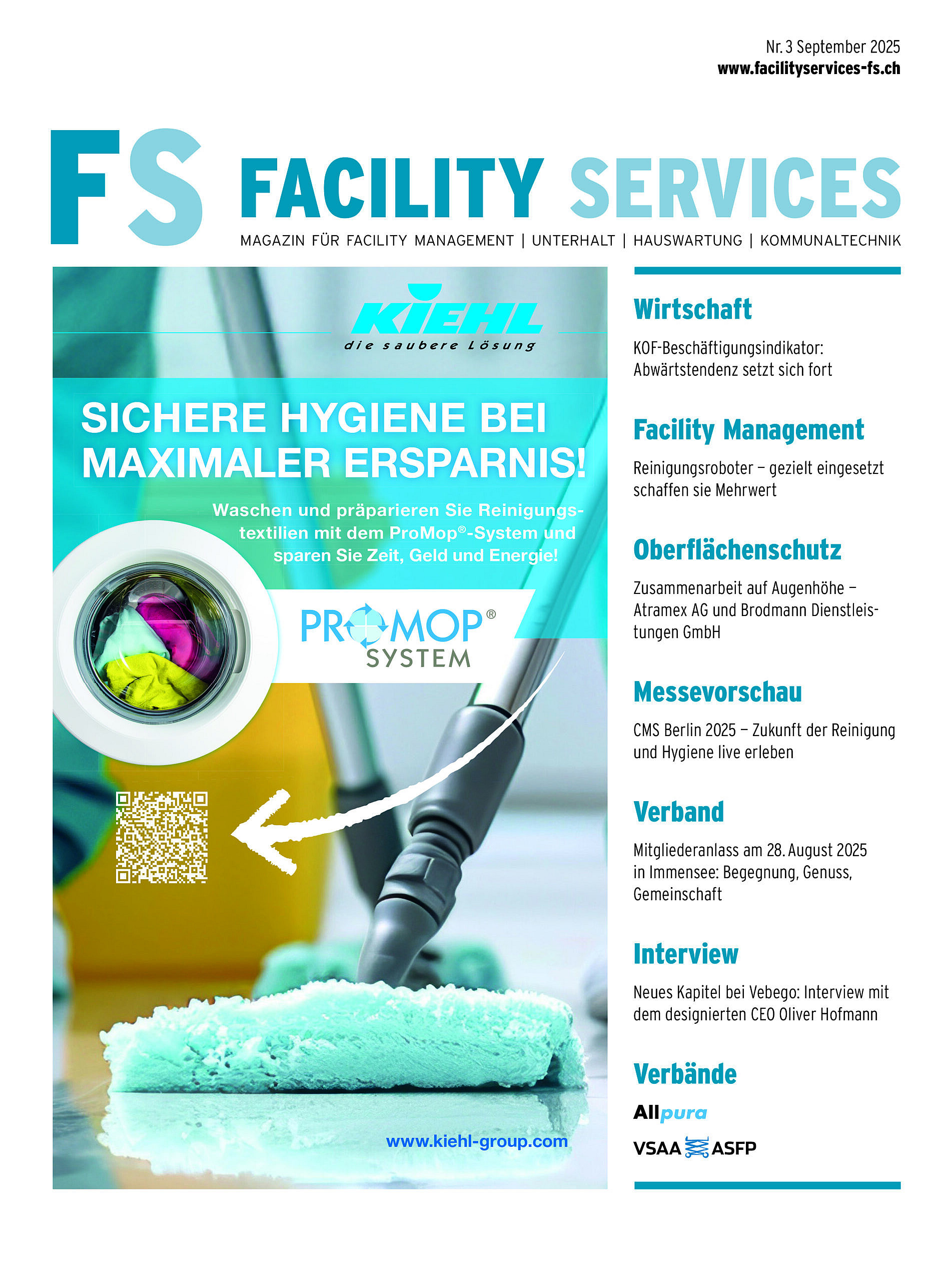 ZielgruppenDie Leserschaft setzt sich zusammen aus: Immobilienbewirtschaftungs-Unternehmen, Facility Manager, Hauswarte, Verwaltungen von Banken, Versicherungen, Schulen, Spitälern, Kliniken und Heimen, Warenhäuser, Shoppingcenter, Industrie- und Handelsunternehmen, Bundes-, Kantons- und Gemeindeverwaltungen, Kirchgemeinden, Staatsbetriebe (die Schweizerische Post, SBB, Swisscom). Das Magazin wird vom Fachverlag FS Media AG herausgegeben. Das Unternehmen ist auf Fachmedien spezialisiert und gibt unter anderem auch Kunden- und Mitarbeiterzeitschriften heraus. Der Fachverlag arbeitet eng mit Sanader PR + Medienberatung zusammen. |